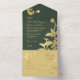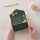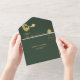 Stylish formal romantic floral botanical gold and dark emerald green wedding invitation with RSVP with meal options card included featuring a formal elegant calligraphy script and line art style floral branches with foliage. +++++++++ Easy to personalise with your details and with pre-printed individual guest name/s and address.