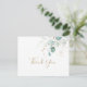 Gold Green Eucalyptus Calligraphy Wedding Thank You Card