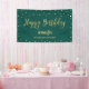 This stylish birthday banner design features gold "Happy Birthday" typography on an Emerald Green background. You can personalise name & year text and the background colour. Perfect decoration to your modern chic adult birthday party.