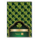Gold, green Irish clover and frame wedding folded place card featuring a green clover with gold outline, a gradient green frame with gold outline, a gold banner and a pattern with shamrocks. This modern, elegant and stylish template design is totally customisable and is perfect for Saint Patrick's or St. Patrick's Day Irish weddings. Fold it along the centre to have a folded tent style place card.