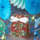 Gold Green Leaves Red Christmas Holiday Gift Box