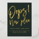 Oops! New plan, Modern fun casual script wedding change the date with a hand written style typography on dark olive green, all colours are editable, with simple and minimalist to announce the postponement of your wedding and new plans