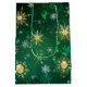 Gold Green Snowflakes Xmas Christmas Medium Gift Bag