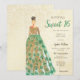 Gold Green Sparkle Dress Sweet 16 birthday Invitation