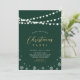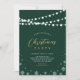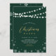 Celebrate the season with this modern holiday party invitation. This design features stylish gold colour text, gold textured snowflakes, and string lights. You can customise the text, font, and colours. Perfect for a gold & green colour theme holiday dinner party, or corporate holiday party.