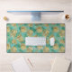 Gold & Green Tropical Leaves Personalise Name Teal Desk Mat