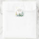 Inspirational wedding sticker depicts a sparkling woodland watercolor design with gold and green pine trees. It features inspirational quote "God has led Two lives to take One path." Good choice for autumn, winter and Christmas.