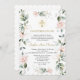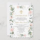 Gold Greenery Pink Flowers Cross Confirmation Invitation