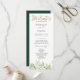 This Gold Greenery Watercolor wedding program is ideal for a boho-inspired celebration. Featuring rich, moody green watercolor leaves and eucalyptus, the design blends rustic elegance with a modern woodland vibe. Customise with the couple’s names, wedding date, venue, a heartfelt thank-you note, ceremony details, bridal party list, and an optional "In Loving Memory" tribute.