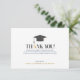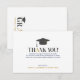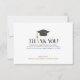 This graduation thank you card features gold and grey retro typography on a white background. It is the perfect card to thank your guests for attending your graduation celebration.
