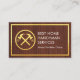 A brown wood layer is encapsulated by a faux gold rectangular frame. On the left is a gold hammer logo you can use. Beside it stands your business name and a slogan caption option which you can change.