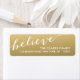 Simply Believe White Script on Gold Background Holiday Greeting Return Address Labels. Elke Clarke© for MonogramGallery. Other colours available