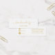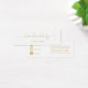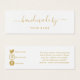Handmade by your name, social media insert card with elegant gold script saying "hand made by" with space for your name and social media icons and handles on the back on a plain white background.