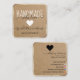 This simple, rustic, and cute business card is perfect for the home crafter, Etsy shop owner, or art fair creative. It features handwritten script font in black and white that says, "Handmade with love by (store name)," on top of a minimal and chic faux printed gold foil border and brown kraft paper background. It's modern, elegant, sweet, and unique; the perfect design for your customers.