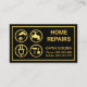Overleaf, the same design theme is used. At the top is a gold handyman tools home logo you can use followed by your prestigious name, the contact details and a slogan option to publicise your services. All lettering are in faux gold.