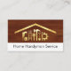 Cover features a brown timber wood design that has an array of gold handyman tools underneath a gold roof ; The tools represent some of the services that you might offer e.g. the drill-measuring can be for home repairs, the ladder-brush for painting-remodeling etc. At the base inside the white layer is the business name "Home Handyman Service" which you can change.