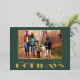 Real gold foil borders your favourite photo and the words Happy Holidays in chic gold foil lettering are on the front of these dark green Christmas holiday photo greeting cards and your message and names on the back. Be sure to double-check your order before adding it to your cart as what you see on the screen is what will be printed. The Live Design Service can help you with your design layout if needed.