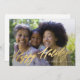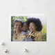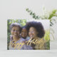 Simple stylish trendy photo overlay chic faux gold calligraphy and white snowflakes Happy Holidays greeting card template personalised with your photo, family name, text, and signature. +++++++++++++ Easy to personalise on both sides!