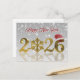 Gold Happy New Year 2026 | Santa Hat and Snowflake Holiday Postcard