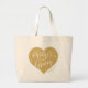 Cute Personalized mother of the groom tote bag features color editable gold heart shape, modern script, and custom name, great wedding party gifts.