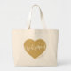 Cute Personalized Bridesmaid tote bag features color editable Gold heart shape, modern script, and custom name, great bridal party gifts.