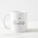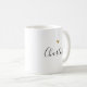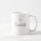 Custom-designed coffee mug featuring modern black calligraphy with elegant gold heart design.