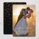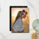 Your photograph takes centre stage on this vertical photo template wedding thank you card. The text "Love and Thanks" is written in a pretty script in gold on the lower portion, with your custom text. The text is framed with intricate gold corner designs. The back of the invitation is a falling gold hearts confetti pattern on black. A touch of old fashioned quality with a modern twist!