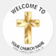Gold Heart Crucifix Church Welcome Classic Round Sticker