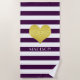 Gold Heart Name Purple Stripes Pattern Beach Towel