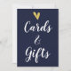 Stylishly modern cards & gifts sign with a stunning gold faux foil heart. The front and back of the card is in chic navy blue.