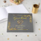Gold Heart on Grey with Gold Border Guest Book