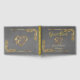 Gold Heart on Grey with Gold Border Guest Book features an intricate gold scroll heart and gold leaves border on a grey background. Room to place the couple's name on the front and names and date on the spine. (Ribbon is simulated in the artwork). Designed to coordinate with the "Elegant Marble, Gold Frame & Heart" Wedding Collection. To change details, click «Personalize». To move the text or change the text size, font, or color click «Click to customize further»