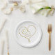 This is a simple and attractive design that can be used for a wedding, anniversary party, bridal shower, engagement party, or many other events. It features a modern swirl heart design in dark gold, with the couple's first names in the middle. It makes a beautiful statement without frills or glitz, and is very classy! Be sure to see the matching paper napkins in our store to complete the look.