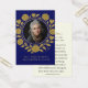 This Catholic funeral keepsake card features a reverent design with golden embroidered roses and hearts encircling a photo of your loved one, set against a deep Marian blue background. The reverse side includes a traditional Catholic prayer for the repose of the soul, invoking the intercession of the Blessed Virgin Mary and the Saints. A sacred and personalised tribute, perfect for honouring a faithful soul and sharing with family and friends at the funeral Mass or memorial service.