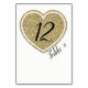 Minimalist wedding reception table number card done in white, with graphics of a gold glitter heart. Personalise the black number for each table at your reception. Matches our Love is in the Air wedding set.