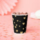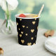 A simple, minimalist design with an irregular, abstract pattern of gold hearts on a black background. The perfect touch of cute glam for any celebration.