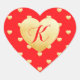 Gold Hearts Faux Foil Pattern on Red Monogram Heart Sticker