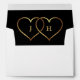 Gold hearts with monogrammed initials lined envelope with return address, edit the text yourself when your order
