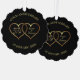 Elegant black background with sparkling numbers and gold hearts. 50th anniversary of marriage