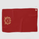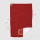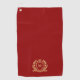 Elevate your golf gear with a luxurious gold heraldic shield crest featuring a custom one-letter monogram, set against a stylish Christmas red background. Complete your look with an elegant and refined golf towel design that exudes sophistication and simplicity.