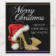 Gold high heel shoe wine bottle labels with pretty gold glitter high heel shoes and cute red Santa hat on an elegant black and gold background with elegant gold script Merry Christmas. You can easily customise these custom and corporate Christmas wine bottle labels for your event by simply adding the text of your choice.