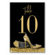 Elegant Glam Black and Gold High Heel Stiletto Shoe Table Number Card with trendy and modern design and fonts, perfect for her birthday party, bridal shower, fashion business event, sweet 16, quinceanera, bat mitzvah or any party celebrating luxe and fun with a high heel pump shoe theme.