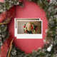 Modern holiday birth announcement card with a simple design featuring a horizontal photo of your newborn baby boy or girl along with "merry little christmas" in an elegant script and baby's name and birth stats below. All text on the front is in real gold foil. The back has a second picture and your personalised message. This cute holiday card is the perfect way to announce your new baby to all of your loved ones.