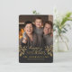 Elegant Christmas Holiday Photo card with faux gold-foil holly branches and berries and gradient grey overlay. Recommended for dark photos. NOTE: this design is a flat image simulated to look like it has a metallic shimmer.