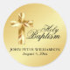 Formal gold Holy Baptism envelope seal features a modern gold cross. Holy Baptism is written beside it in a beautiful ornate script. The child's name is written below in capital letters. Their baptism date follows in a smaller script. Easily customised.