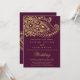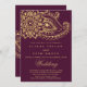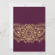 This gold Indian paisley wedding invitation card is perfect for an elegant wedding. The mehndi design features a lovely floral henna mandala and paisley motif on a burgundy background.