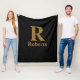 Gold Initial/First/Family Name On Black Fleece Blanket