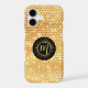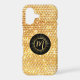 This stunning phone case has a gold jewel like pattern background with star shines. Your monogram is in gold script at the center of a black circle banner lined in shiny gold with star burst radiating lines. Bright, colorful, and elegant for her!
