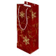 Festive holiday wine gift bag done in rich red, with golden swirls, holly and snowflakes. The front of the wine bag has a black rectangle text area, with gold graphic text reading JOY.