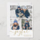 An elegant photo holiday card featuring your special favourite 3 photos and your family name and date set in classic modern typography over a chic script message of joy. Designed by Thisisnotme©
